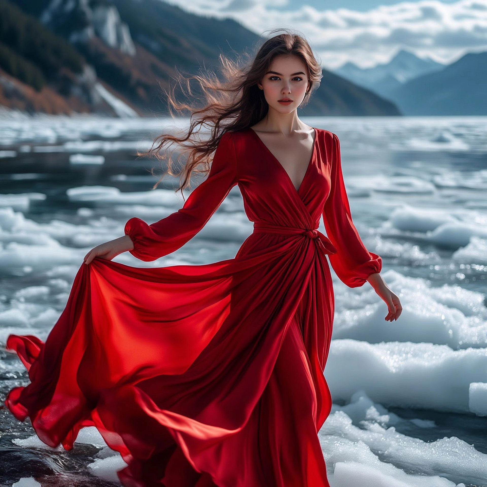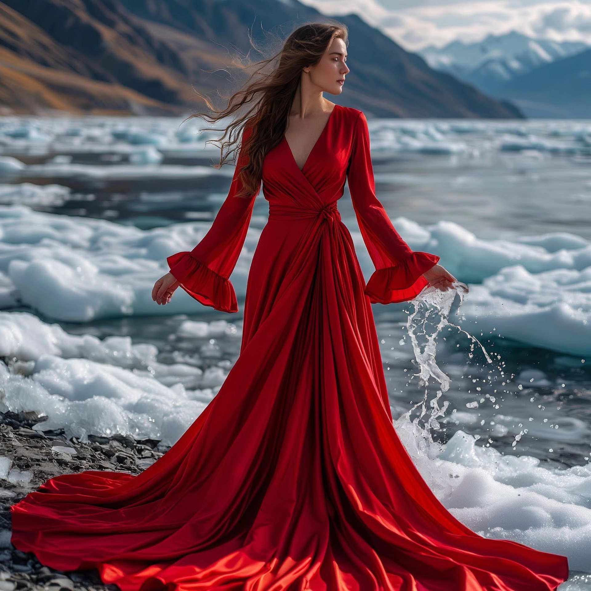 Платье из шелка с несъемным шлейфом. Фасон на запАх, большая размерная сетка. Шлейф 1,8 метра