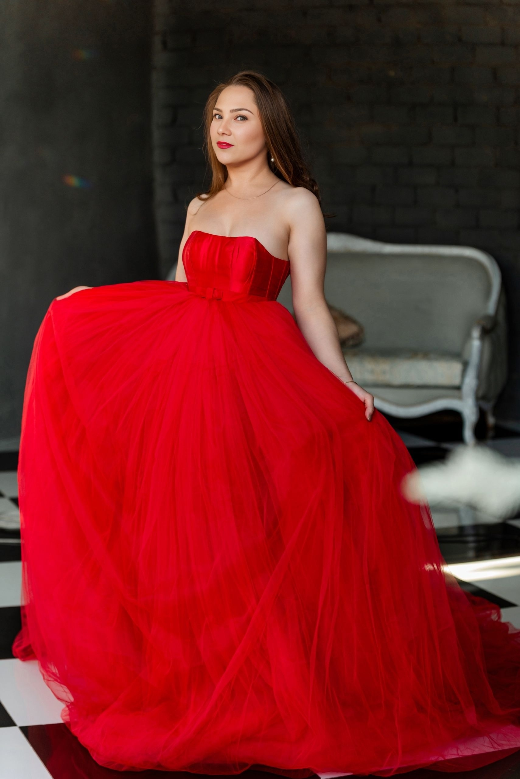 Люпин. Фатиновое пышное по шлейфом. Размер до 52 (54)